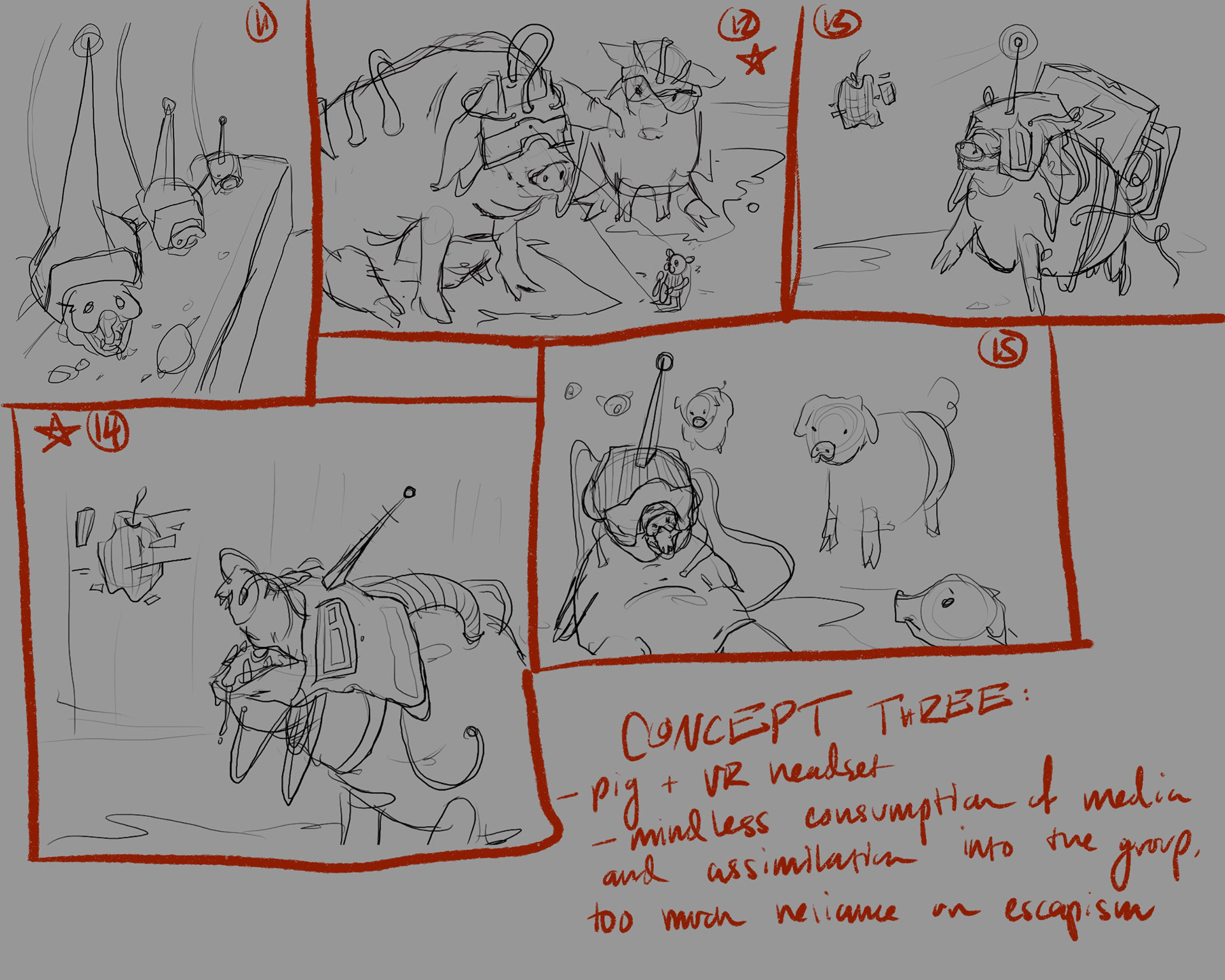 Exerpt from set of thumbnails that led to final composition.