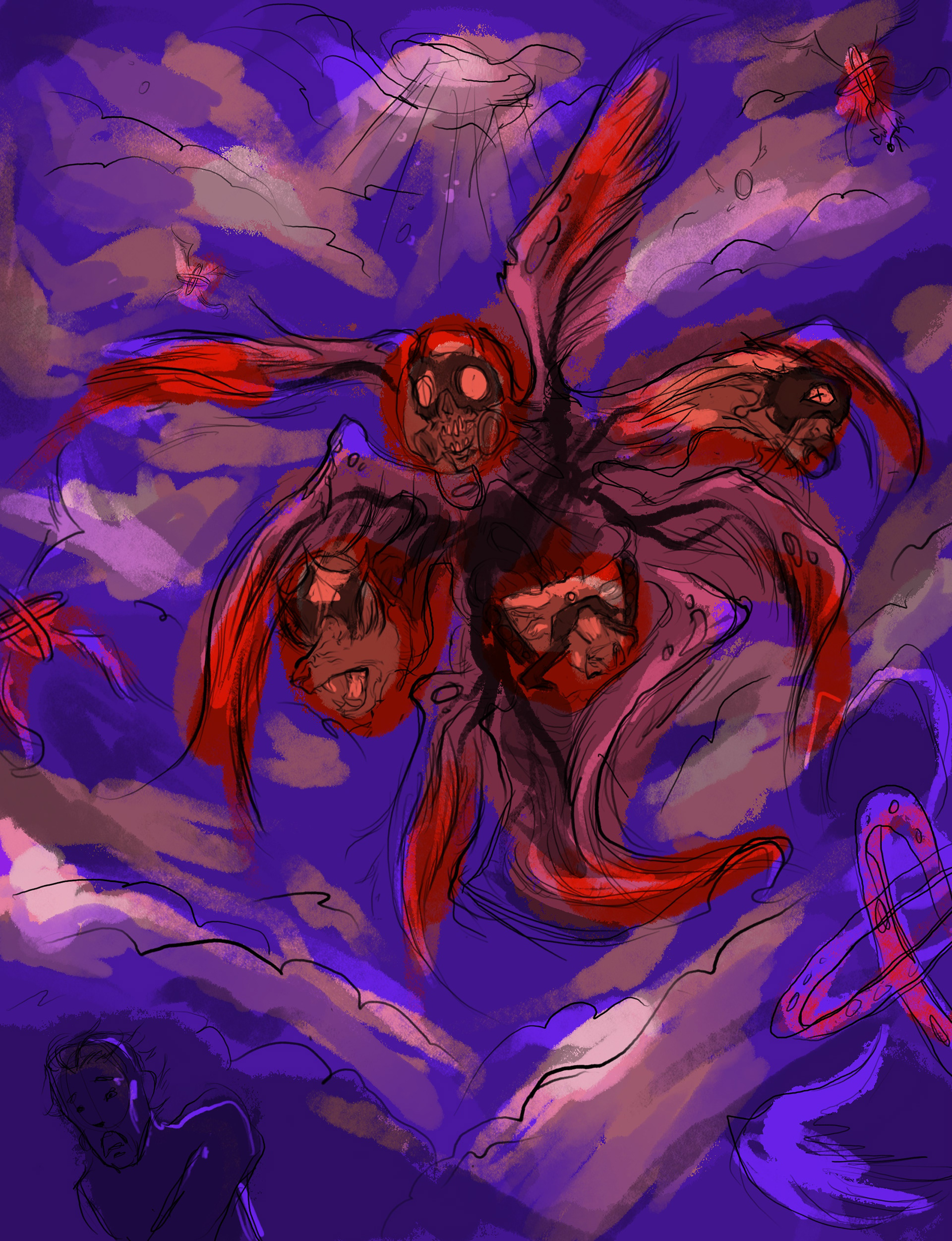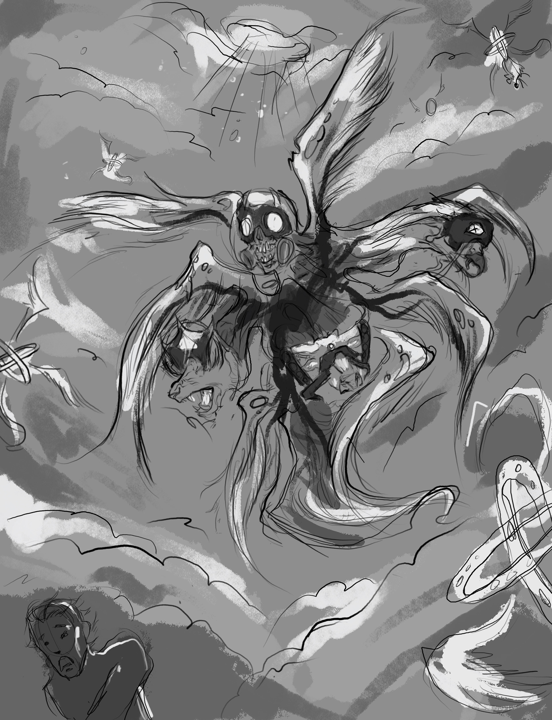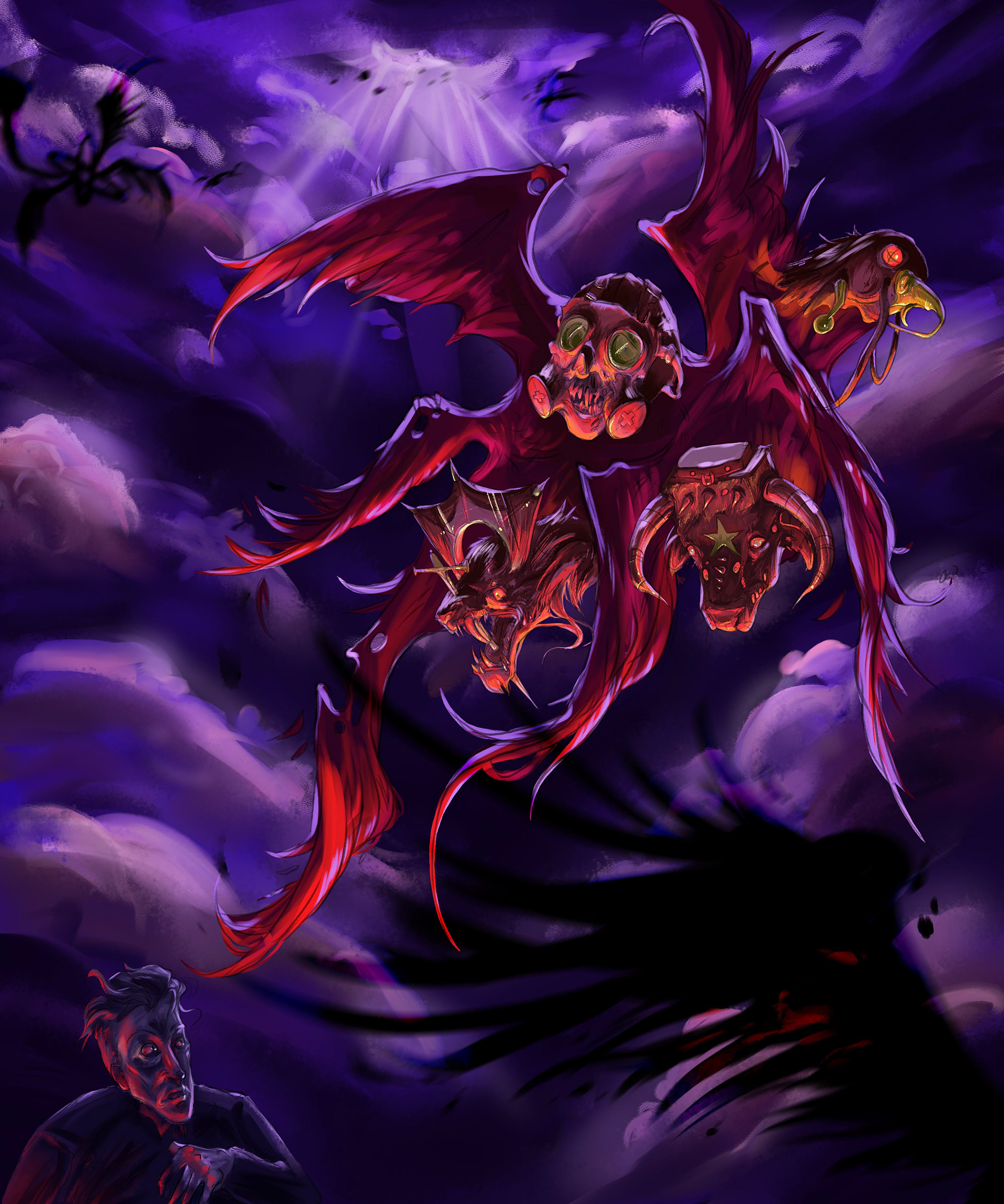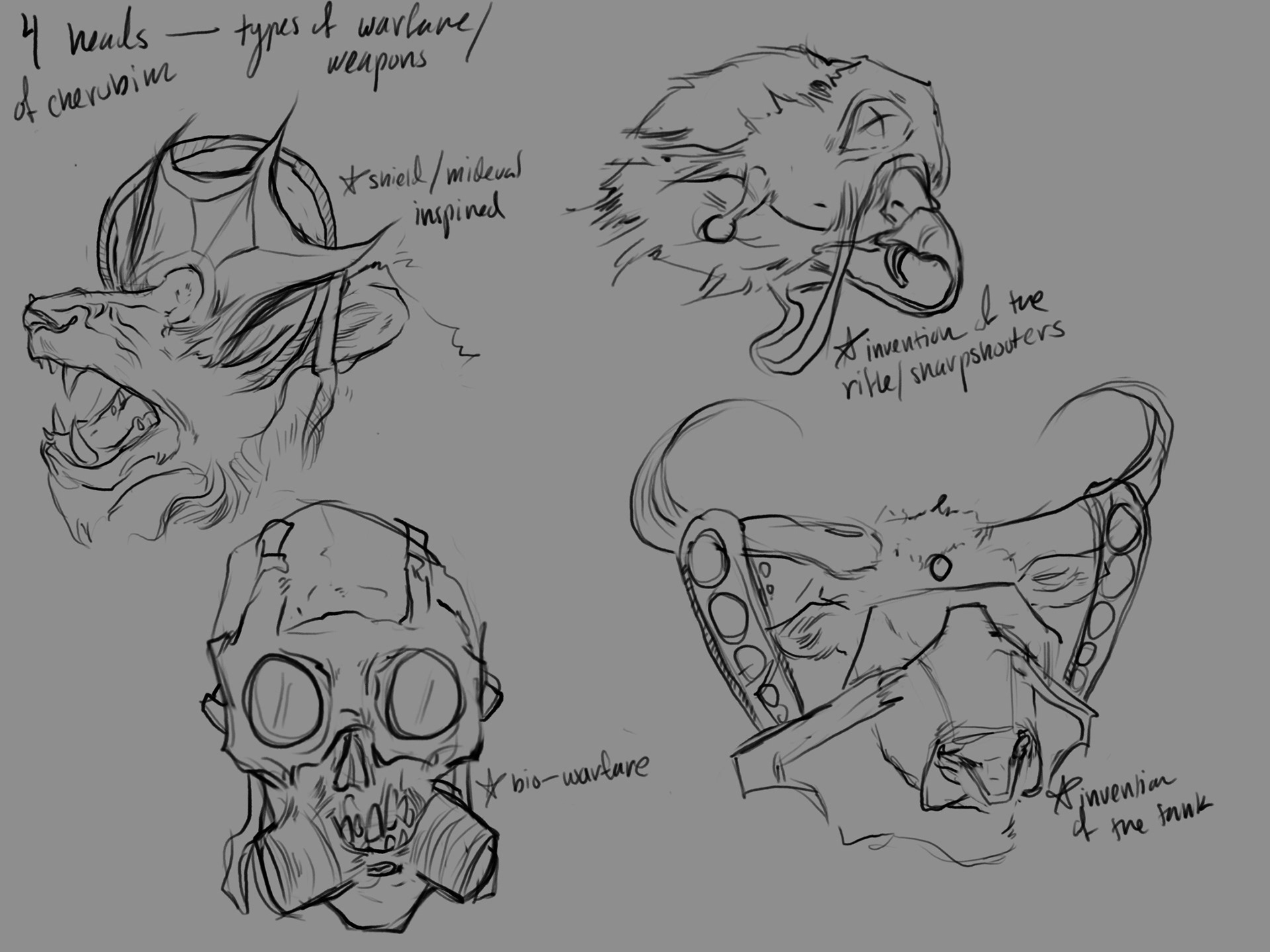 In the Bible, a certain subset of angels named Cherubim are described as many winged creatures with four heads: that of a human, an ox, an eagle and a lion. There is also a popular theory about the biblical end of times that describes how what God was really showing these prophets was modern military technology, and they could only describe such alien technology in words that were familiar to them. In this piece, the artist wanted to merge these animals with their best military history counterparts and create a creature that definitely would have given a few ancient prophets some serious heart attacks.